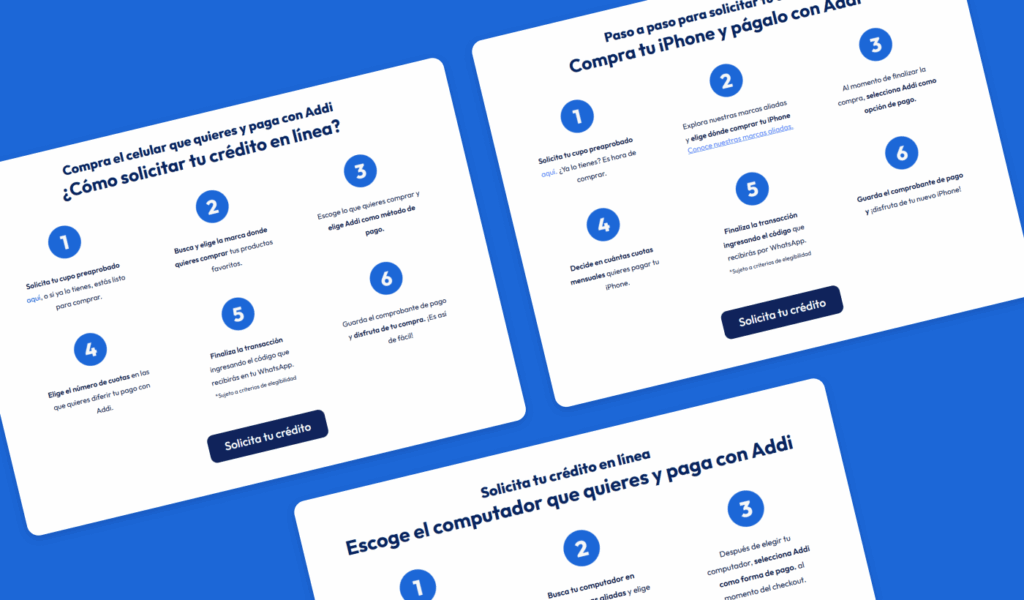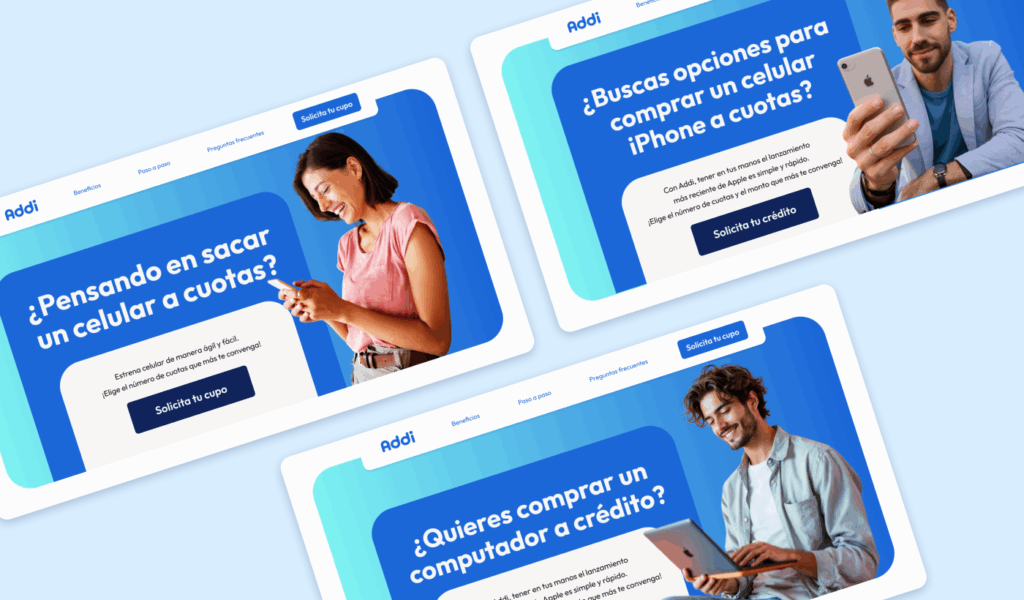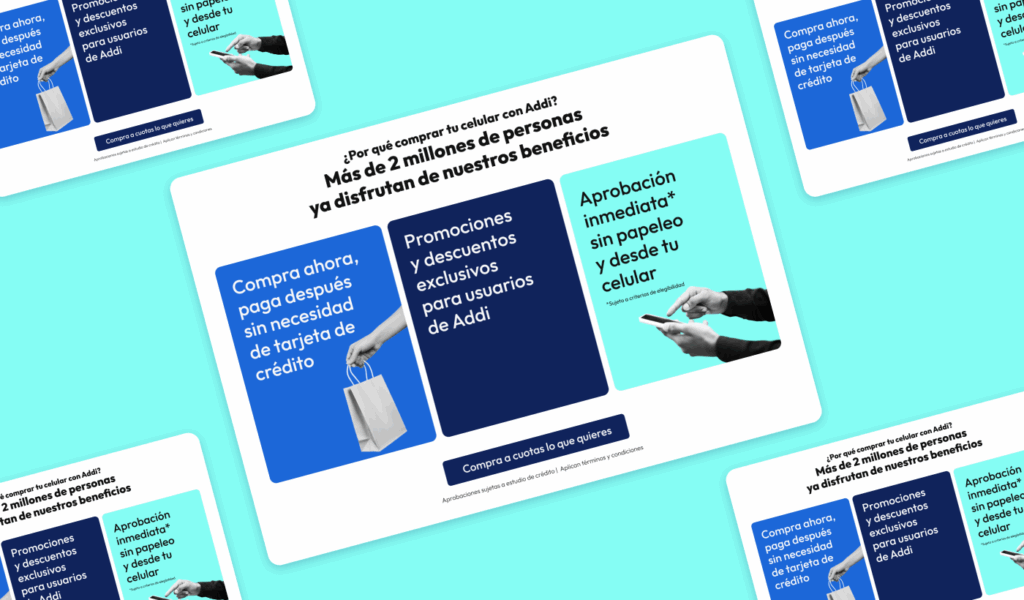 En cuanto al diseño, se trabajó a partir de un sistema modular que facilitó la organización de los contenidos y permitió jugar con colores, imágenes y tamaños de manera estratégica. Todo se desarrolló cumpliendo con el manual de marca de Addi, garantizando coherencia visual con el sitio web principal y con la comunicación desplegada en redes sociales y pauta digital.