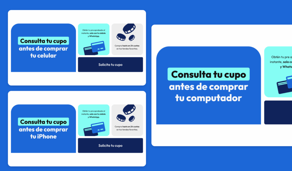 Explora el diseño modular a través de un comparativo en el que se reflejan de manera clara las iteraciones de acuerdo a cada producto, tanto en la redacción como en el diseño.
